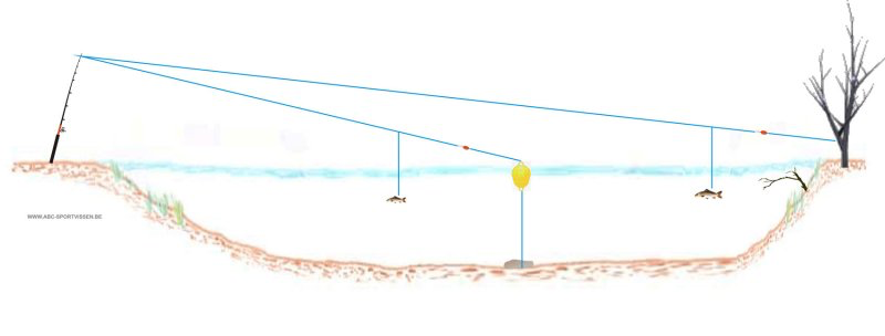 Lijn: gevlochten lijn van 0,40 mm of dikker, of nylon van 0,50–0,60 mm